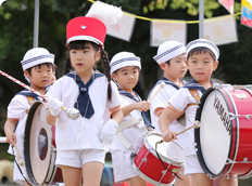 ⾳楽と体育に特に⼒を⼊れることで園児⼀⼈ひとりの個性を伸ばし、豊かな⼼と体を育てます。